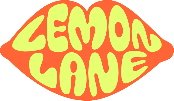 Text in lemon-shaped design reading 'Lemon Lane' in bright yellow and orange colors.