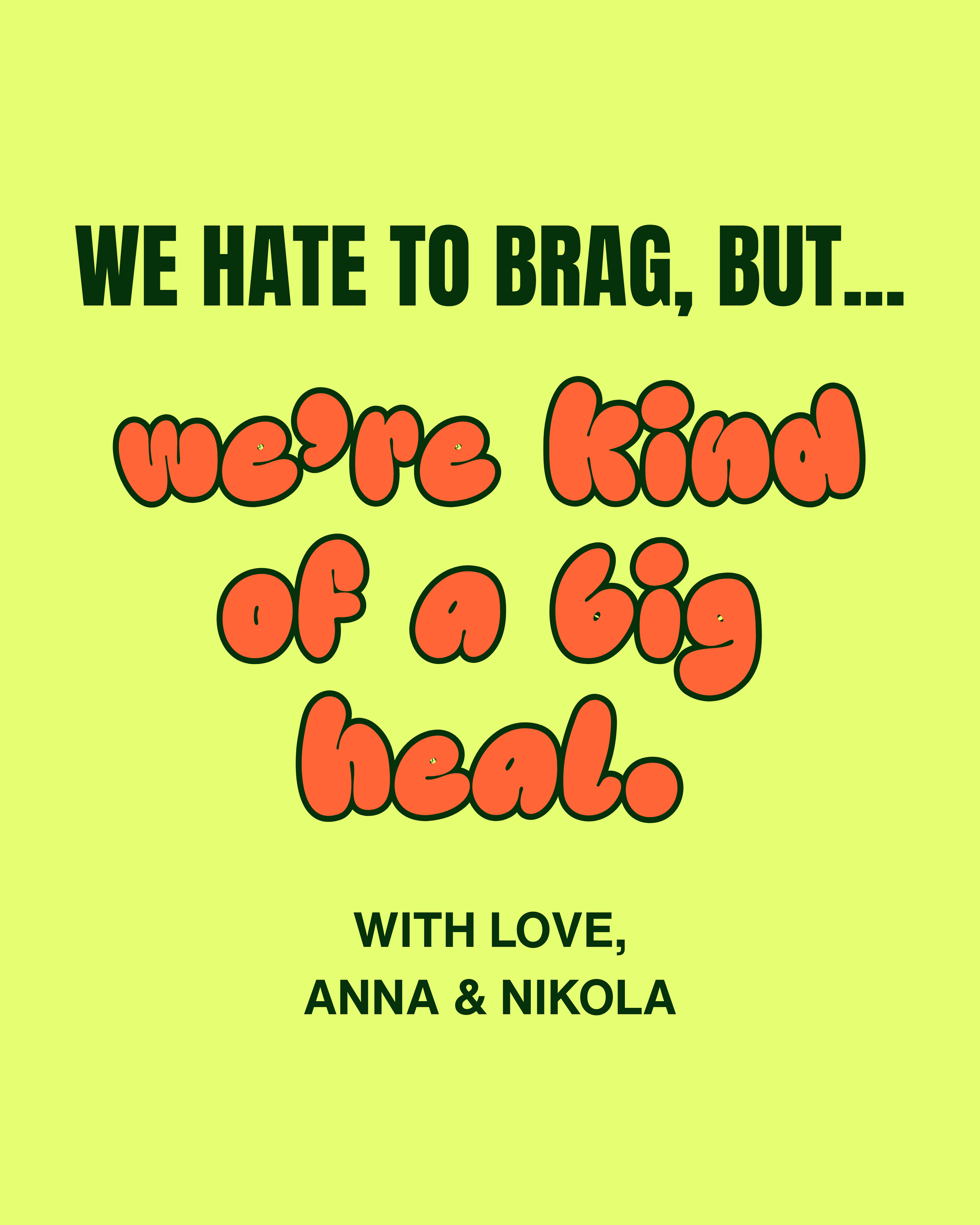 A vibrant graphic with yellow background features two photos of friends, a video call screenshot, and bold text that reads '2 Friends 2 Breakdowns 1 Vision' in orange and light yellow fonts.