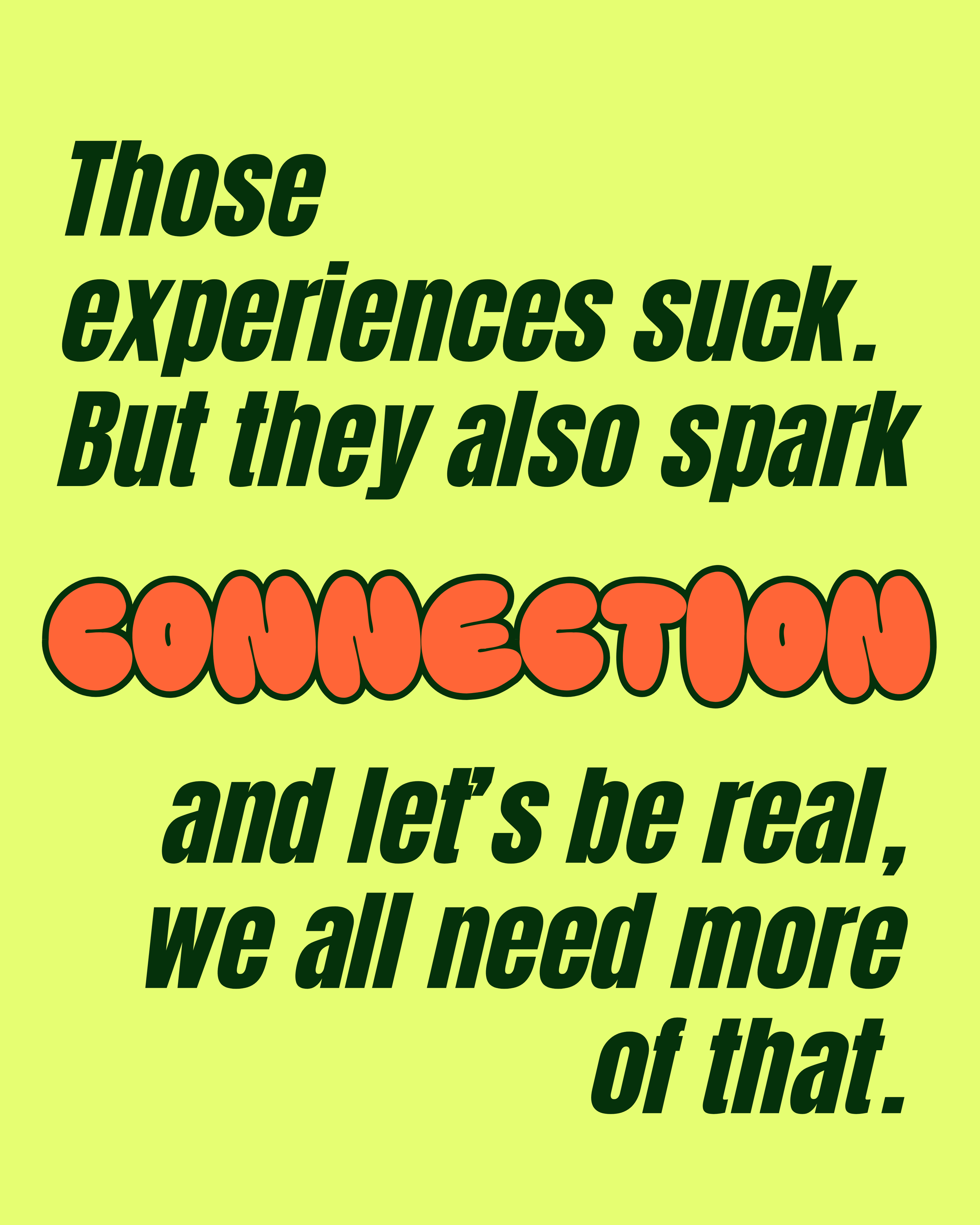 Bright yellow background with red italicized text reading, "There are thousands of women walking the same lane and we're bringing them together."