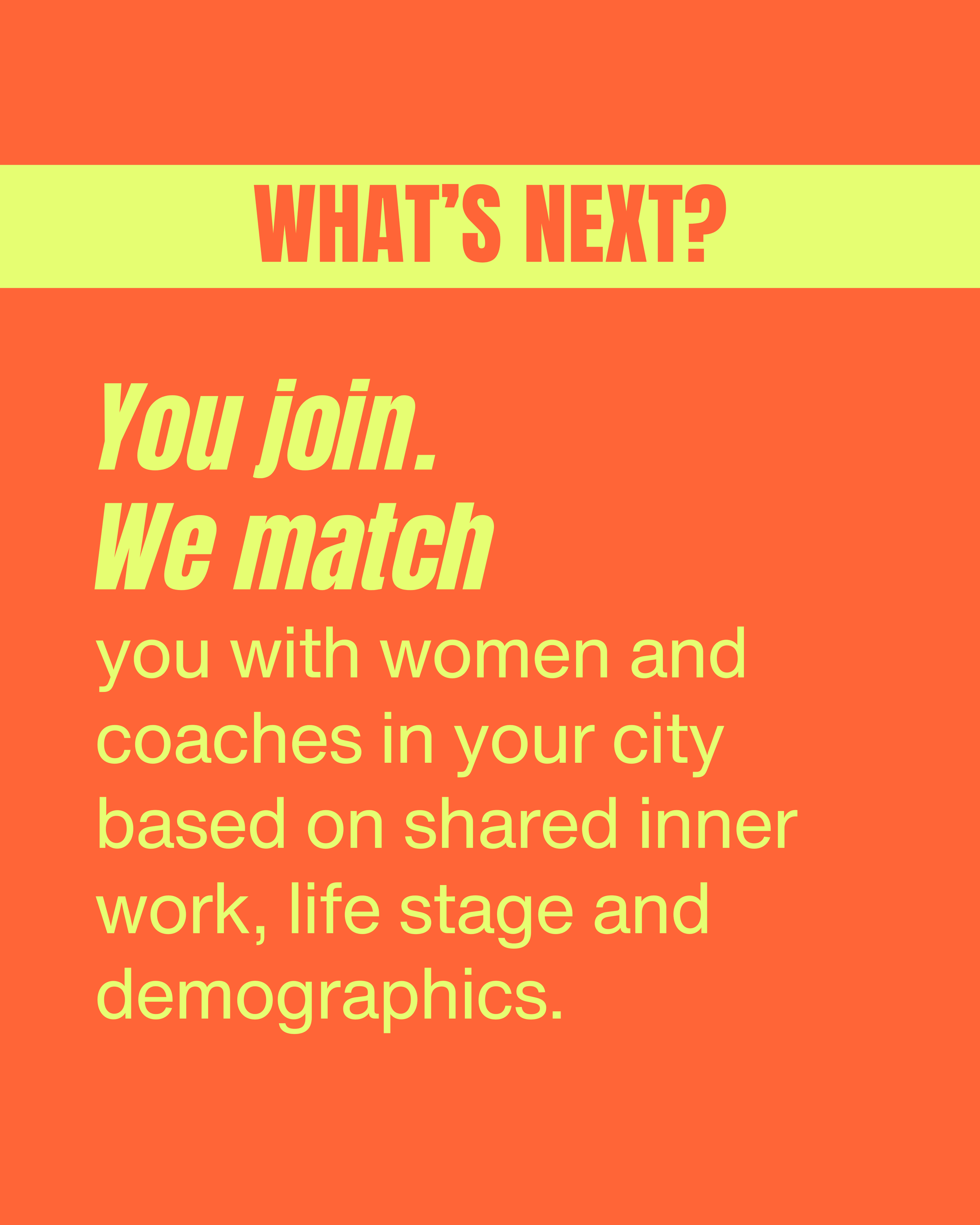 We match you with women and coaches in your city based on shared inner work, life stage and demographics.